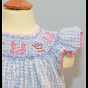 SOLD! Shrimp & Grits blue gingham beach theme smocked dress . (only dress available for sale.) Brand: Shrimp & Grits Kids