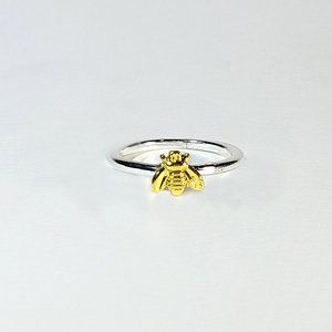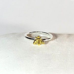Simple Tiny Silver Gold Bee Ring size 6