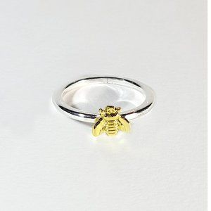 SOLD Simple Tiny Silver Gold Bee Ring size 6