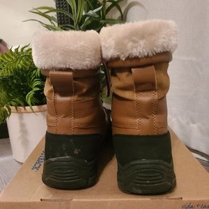 Rugged Outback women's snow boots in cognac, size 8. I usually wear an 8.5 and they fit me very comfortably and were very warm. I wore them for about 4 days on a trip to Colorado. They are in great condition and come with the box.