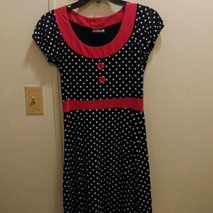 Sourpuss Polka Dot Beki dress. Only worn once. Size Small. Personally secured the buttons so they wouldn't fall off.Flattering A-line skirt and waistband were added to our Beki top to create this totally adorable dress.95% Cotton/ 5% Spandex.