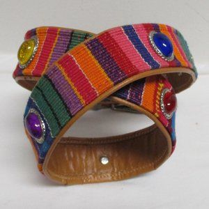 ***SOLD*** Southwestern Colorful Striped Woven Belt sz M Cabochon Conchos