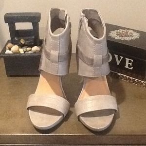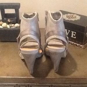 Cute and sexy cutout sandals. I thought they would fit but are a little big around the ankles. Very cute with jeans! Worn a couple of times. Excellent condition!!