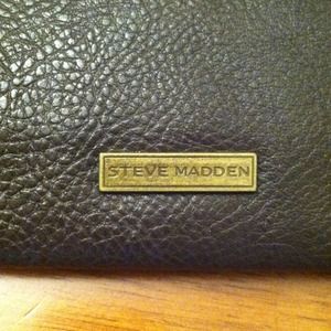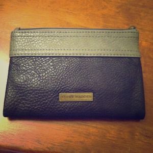 Steve Madden black and gray wallet. Perfect to hold for a night out. Missing zipper tags on top but easily fixed.