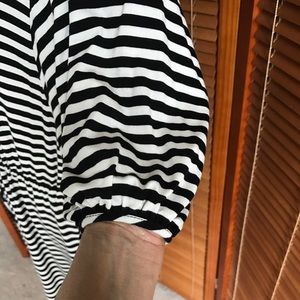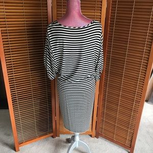 Classic knee length dress glams up your work wardrobe. Easy comfort with soft fabric, drawstring waist and gathers at above the elbow sleeves (shown). 95% rayon, 5% spandex. Excellent condition. Compliments guaranteed