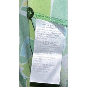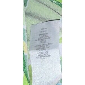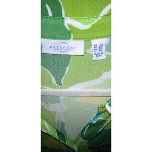 Stunning Susan Graver Passport blouse. It has a beautiful floral design in green, yellow, turquoise, and white. It Is button up, long sleeve, collared V-neck with gold buttons.