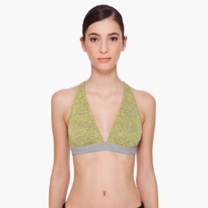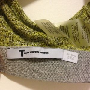 Super soft jersey bra from the T by Alexander Wang line. Marled yellow and grey pattern, grey trim, back hook closure. Worn twice.
