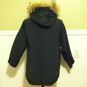 TENTH MOUNTAIN of Aspen Colorado classic coyote trimmed ski parka. Women's XS fits sizes 6 to 14. Reversible black to khaki, gore tex, lots of pockets.