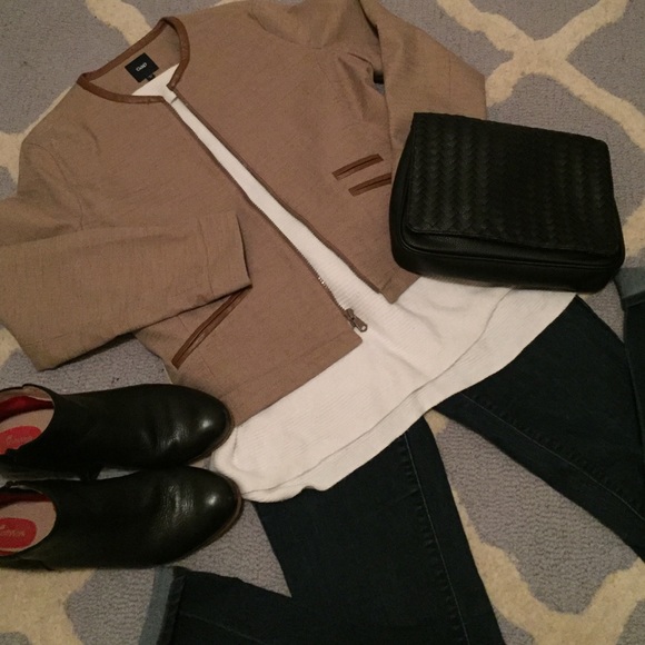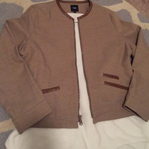 50s inspired jacket with vegan leather lining around the collar and pockets