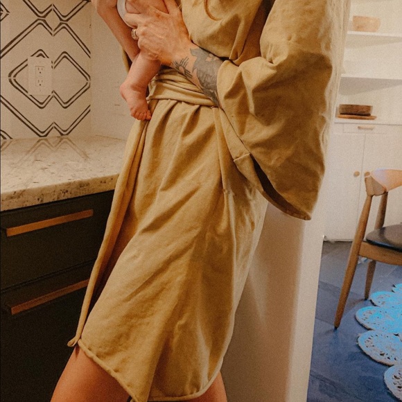 Handcrafted, naturally dyed Sunrise Robe in Golden Wheat by The Irie Collection. Each color is made in small, limited run batches and completely one of a kind, so this color is no longer available! So comfy- my fave undergarments brand! Just never reach for this piece. Like new!