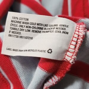 Maternity Dress, knit, 3/4 sleeves, pockets, unlined, 100% cotton, machine wash, red & pale blue