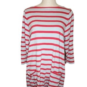 SOLD The Nines by Hatch Maternity Dress Knit Stripes Medium Red Blue Pockets