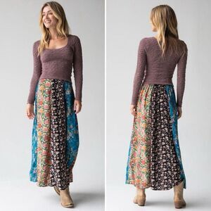 Natural Life Valentina Patchwork Maxi Skirt M Boho Cottagecore Prairie Hippie