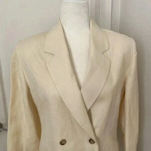 Brooks Brothers Womens 2 Button Vintage Linen Blazer Size 2 Cream 80s. This blazer is pre-owned. Good condition. A few small marks on the jacket. See photos. Shoulderpads. Style is a little big and boxy. Measurements: 18 inch chest 16.5 inch waist 28 inch length 22 inch arm length