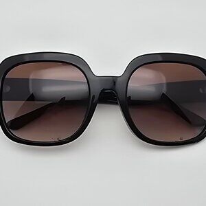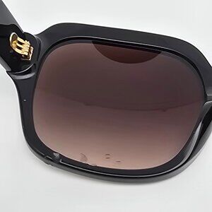 This listing is for authentic Tory Burch TY7143U 1709/13 Black Gold Frame Dark Brown Gradient Lens Square Sunglasses w/ Case 56-21-140. Sunglasses are in poor/fair pre-owned condition, bottom of both lenses and frame have bite marks (see photos). Listed price is reflective of item condition. Size: 56-21-140. Made in China. Tory Burch soft case included in listing. Please see pictures to make your complete condition assessment.