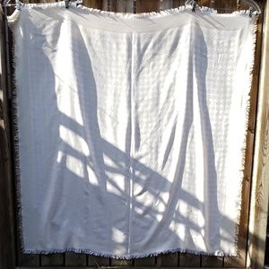 Iconic and timeless Tory Burch Traveler Scarf in ivory.
