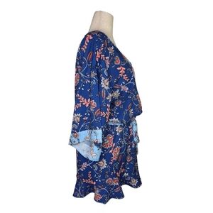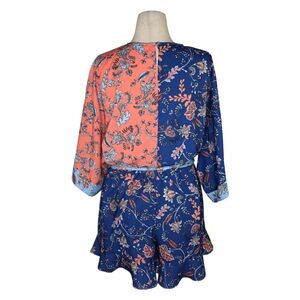 *SOLD* Umgee XL Floral Patchwork Kimono Sleeve Wrap Romper Ruffle Hem Boho Chic
