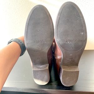✨ Pictured here are the Chestnut Faux Leather Riding Boots from Unisa in a size 8M. These are a staple pair of riding boots that will never go out of style!
