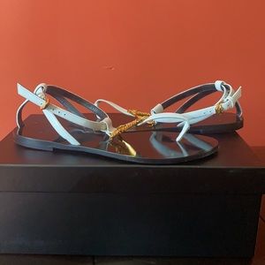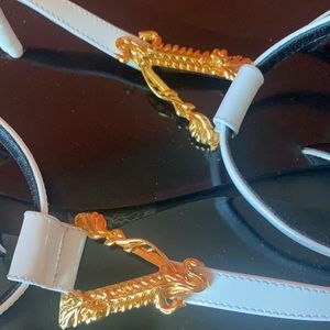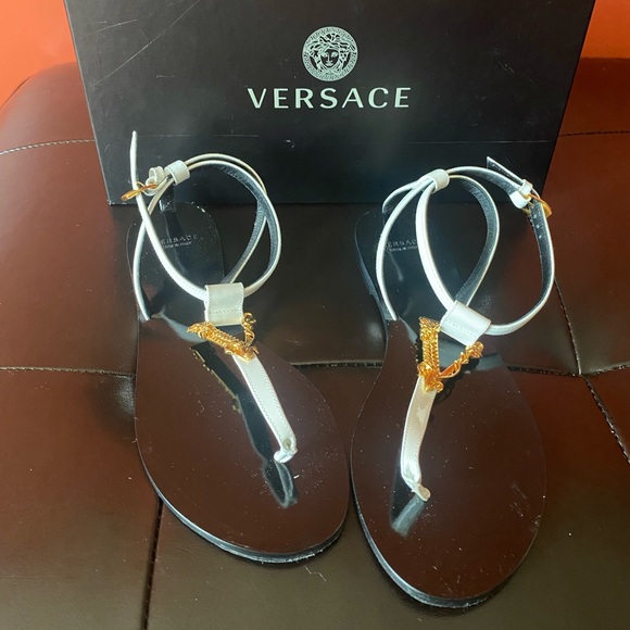 Versace optical white with gold sandals. Worn twice. Box included. Ask any questions and I’ll answer. 😊