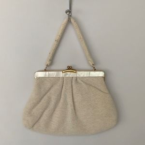 Vintage mesh bag in ivory with mother of pearl detail, some strap flaws (pics 3 & 4)