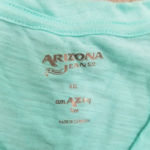 This listing is for both t-shirts. Both by Arizona Co. One is a lightweight, heathered turquoise - size XXL. One is a lightweight, deep purple - size L. Both are great for warmer weather. Cute for layering too! Please ask question. Make offers. Bundle! I need to get rid of some things!