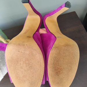 SOLD!! Vince Camuto Olivia Open Toe heels, Pink/Fuchsia Suede, Womens Size 7.5