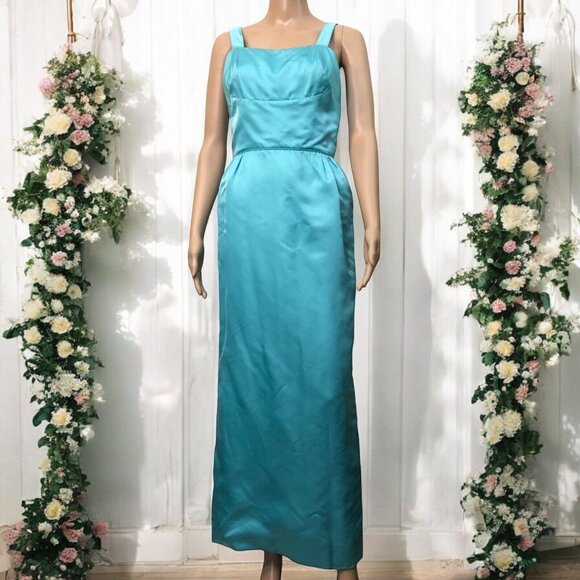 SOLD Vintage 1950s/60s Cyan Blue Maxi Wiggle Dress