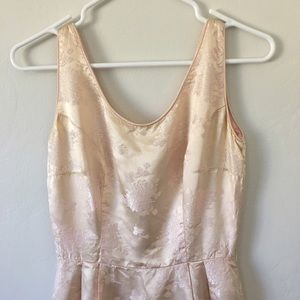 • Fully lined silk dress • Peachy Pink Color • Stunning Floral details • Covered zipper with hook and eye clasp • Lauhala brand Hawaii • Sleeveless •