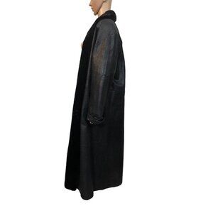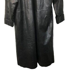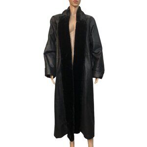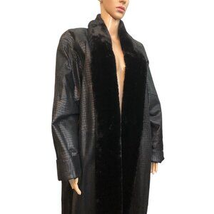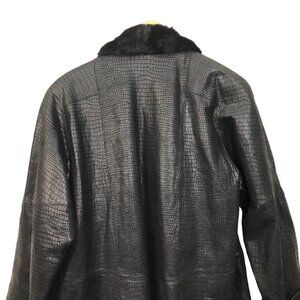 Excellent preowned condition! Awesome 90s classic Gothic chic! Leather is textured with a reptile snake/alligator/crocodile type skin. 100% genuine leather exterior. Faux fur trim goes around the neck all the way down to the bottom. Features shoulder pads as well. Size medium. This style coat is made to be a relaxed loose fit. Very chic style