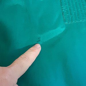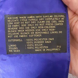 Teal green and purple raincoat with detachable quilted liner. Excellent condition. Tag says size 8, but I'm a 12 and it fits fine. There are two tiny stains that are barely noticeable ( see photos). Measurements taken laying flat.