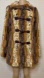 Luxurious faux fur coat with toggle closures. Features a mix of brown, cream, and tan hues. Perfect for a stylish winter look.