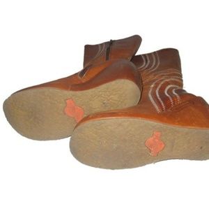 SOLD Vintage Destroy Wedge Hi Heel Leather Boots