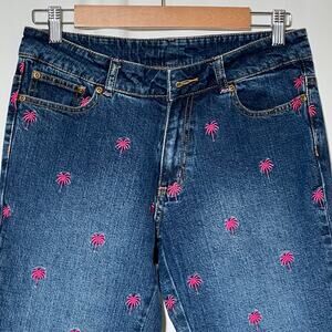 Lily Pulitzer Embroidered Palm Tree Straight Leg Jeans Blue Womens Size 4