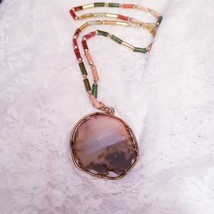 "SOLD* Vintage Faux Jade Necklace W/ Large Agate Pendant