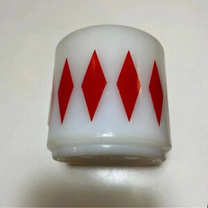 Vintage Fire King Anchor Hocking Mug Milk Glass Harlequin Red Diamond USA.