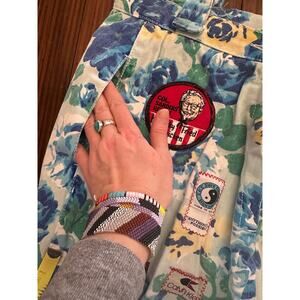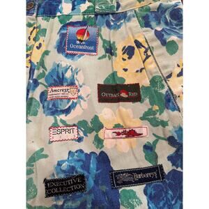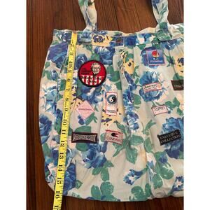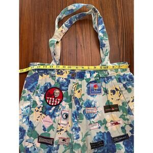 Great shoulder bag or tote! Most likely made in the 90's with fun vintage tags from a pair of vintage jeans. The inside is unlined. This one was a pair of 90's Floral Jeans. Vintage tags collaged range from the 70's-90's, this one features a vintage KFC patch, vintage Burberry tag and lots of fun 80's ones!