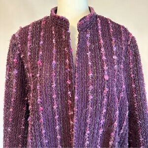Purple Tweed Boucle Wool Mohair Open Blazer Jacket