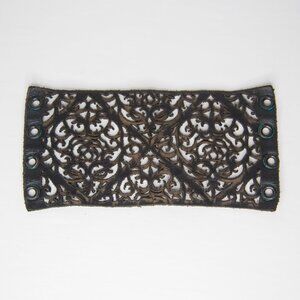 SOLD Vintage Laser Cut Black Leather Corset Wrist Cuff Bracelet