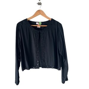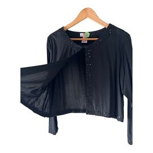 An exquisite piece from Paradiso A combination of sequins and beads artfully trimmed along neckline , cuffs and open front center