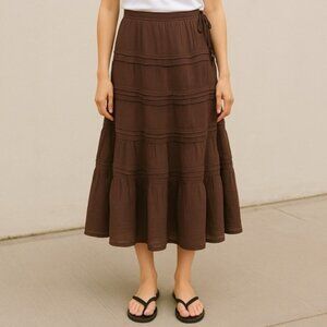 SOLD Vintage Y2K GAP Tiered Brown Midi Skirt Size 6 Cotton