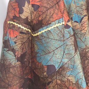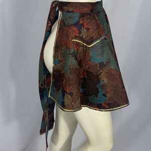 New true vintage half apron. Gorgeous fall leaves with gold trim. Wide long ties. Single front pocket.