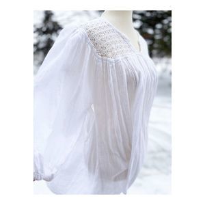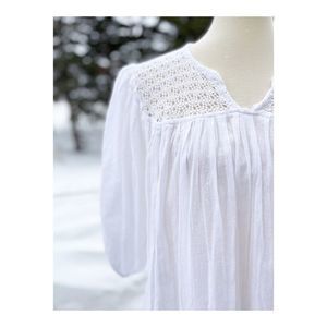 SOLD Vintage 90s Boho Peasant Top Balloon Sleeve Crotchet Collar 100% Cotton