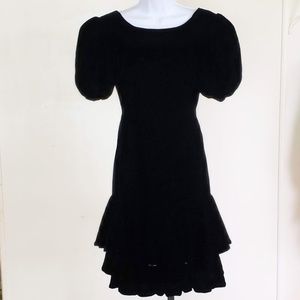 SOLD Vtg 80s Lillie Rubin Velvet Dress Black Ruffled 4