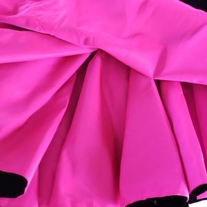 FABULOUS vintage Lillie Rubin Velvet cocktail dress with double ruffle and hot pink lining that peeps out under the ruffles, gathered and flows easily. Large puffy sleeves, comfy and a little bit loose on top, and deep scoop back with buttons makes this a perfectly fun and elegant dress! High quality design, the dress is heavy velvet with heavy pink lining.