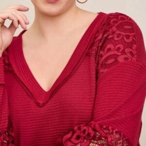 NWT plus size women's ladies' fashion rhubarb burgundy lace waffle knit sweatshirt top loungewear lounge top agc