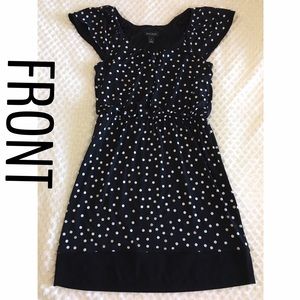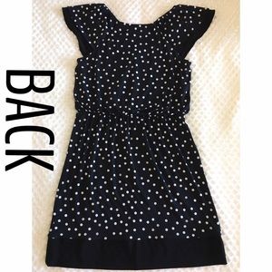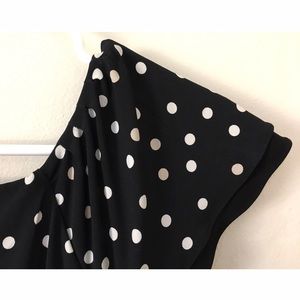 WHBM Polka Dot Dress • Dress is black • Dots are white and cream • Upper Dress is lined • Flutter sleeve detail • Excellent used condition • Stretch • Dress: 95% poly 5% spandex, Lining: 100% poly • Machine Wash • Looks great with belt • So comfortable! • No trades, please