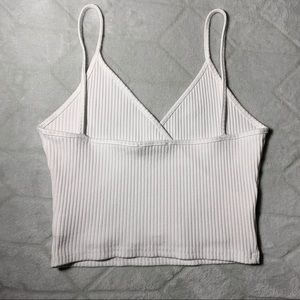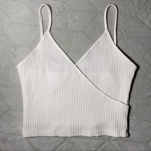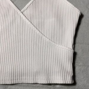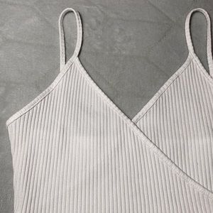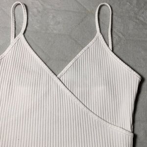 Off white in color. Wrap style. V-Neck. Spaghetti straps. Ribbed. Only worn once. Awesome condition. I accept all reasonable offers! ๐Ÿ™‚
