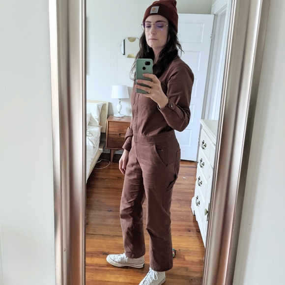 SOLD Wildfang essential coverall long sleeve jumpsuit, xs, sold out brown color