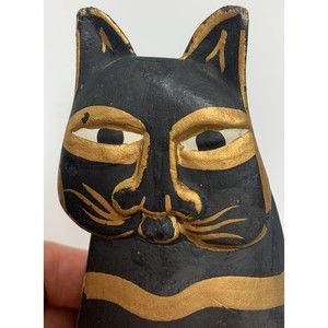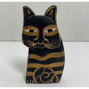Vtg Wood Hand Painted Carved Laurel Burch Cat Figurine Single Replacement. Minor scratches due to age. Please see pictures for item description.
