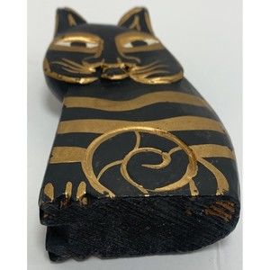 “”SOLD”” Wood Hand Painted Carved Laurel Burch Cat Figurine Single Replacement